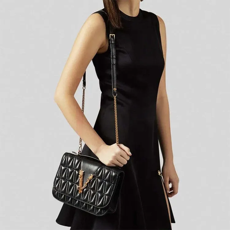 VERSACE Кожа Сумка с цепочкой через плечо одно плечо женская черная