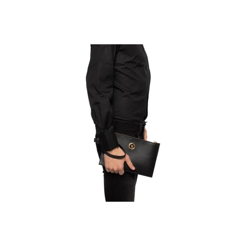 VERSACE Кожа Монета Кошелек для монет Коммутирование Клатч Маленький Мужской Черный