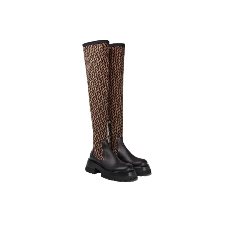 VERSACE LEONIDAS Женские высокие сапоги до колена черные и коричневые