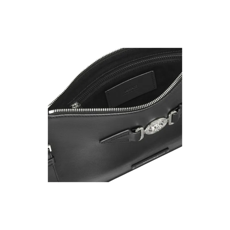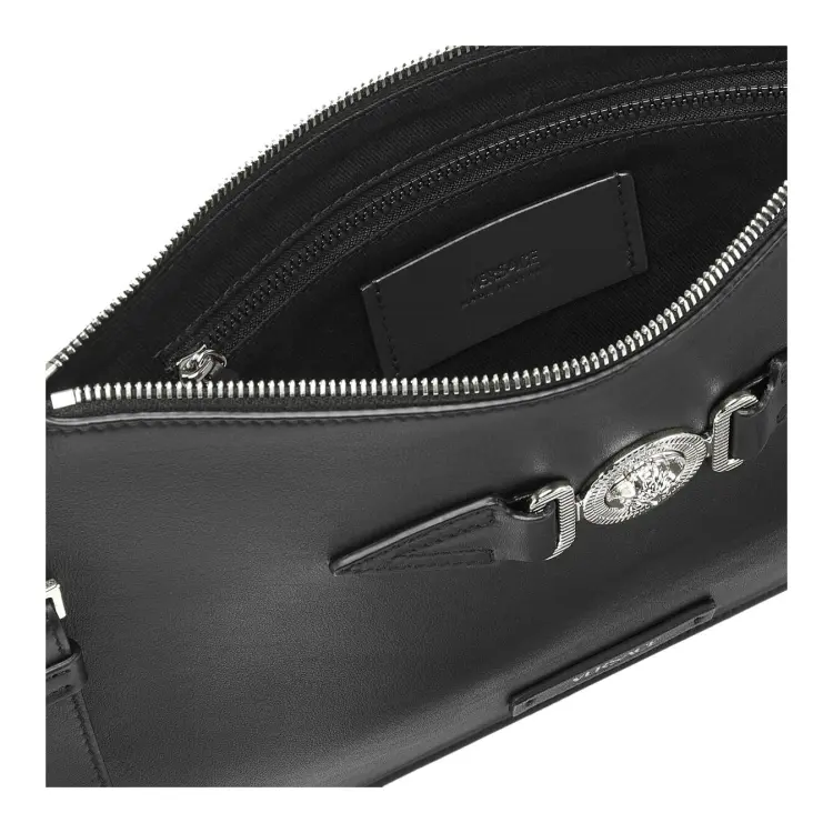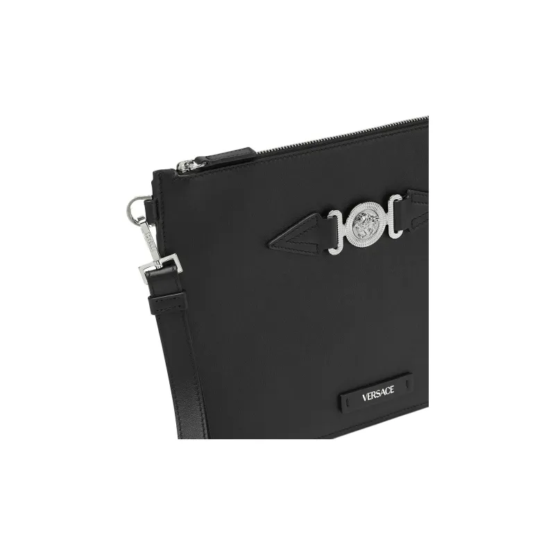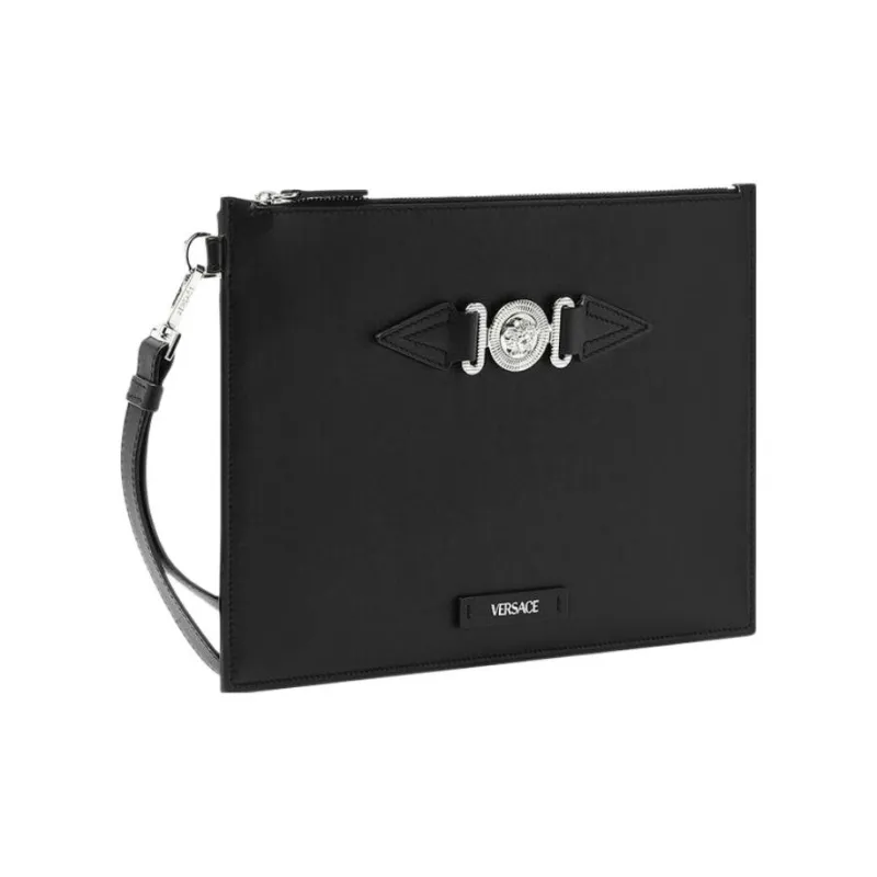 VERSACE MEDUSA BIGGIE серия Гладкая коровья кожа Клатч Мужской Черный Серебряный