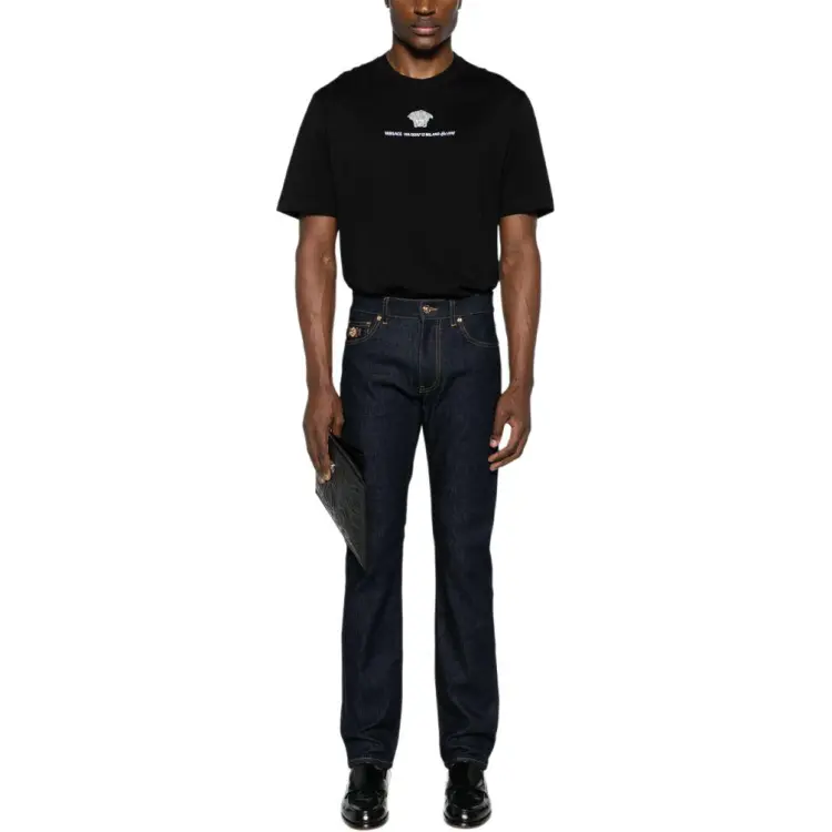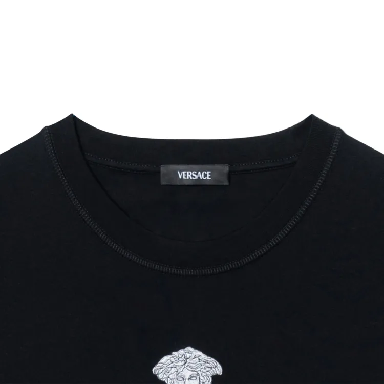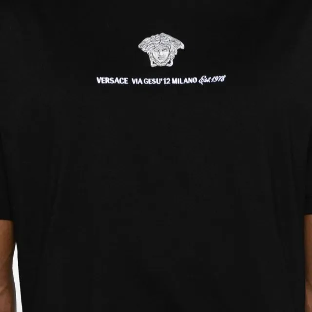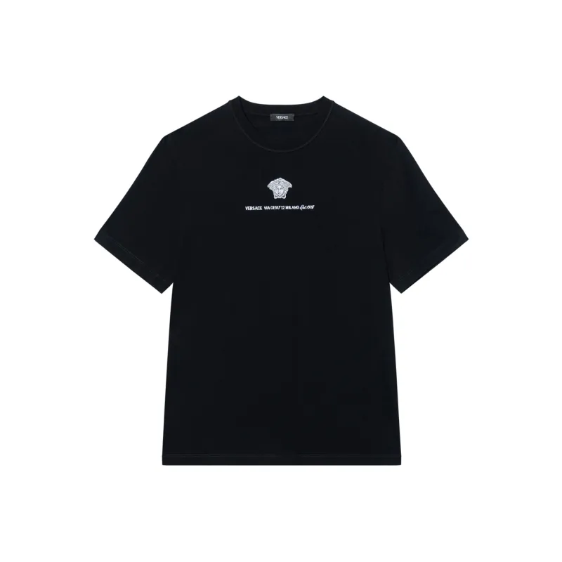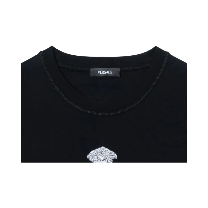VERSACE Однотонный Letter Logo Вышитый Круглый вырез Короткий рукав Т-рубашка Мужская Черная