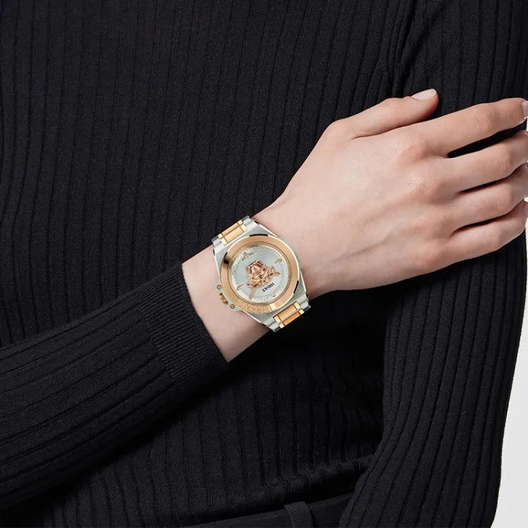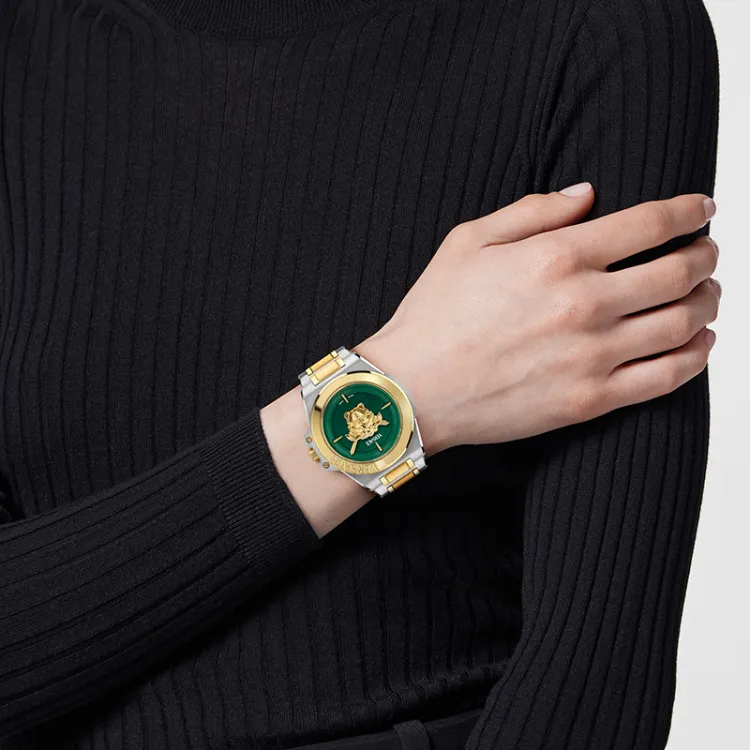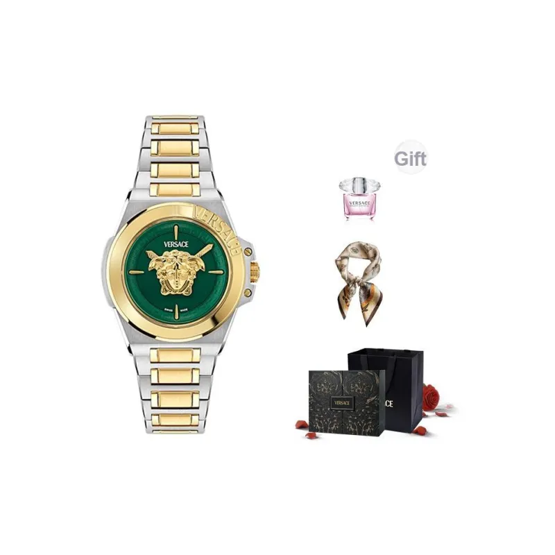 VERSACE Женские часы Кварцевый механизм Ремешок из нержавеющей стали 37 мм Черный циферблат