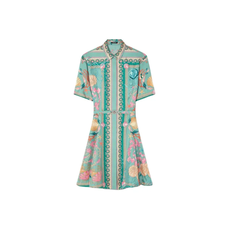 VERSACE Medusa '95 SS25 Короткий рукав Платье Женское Зеленое