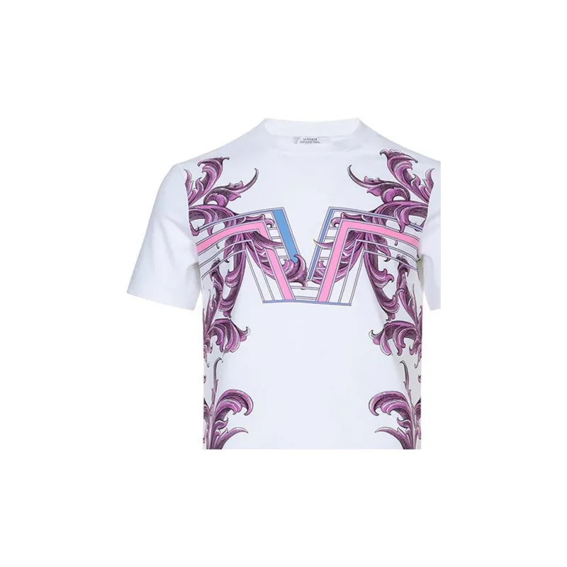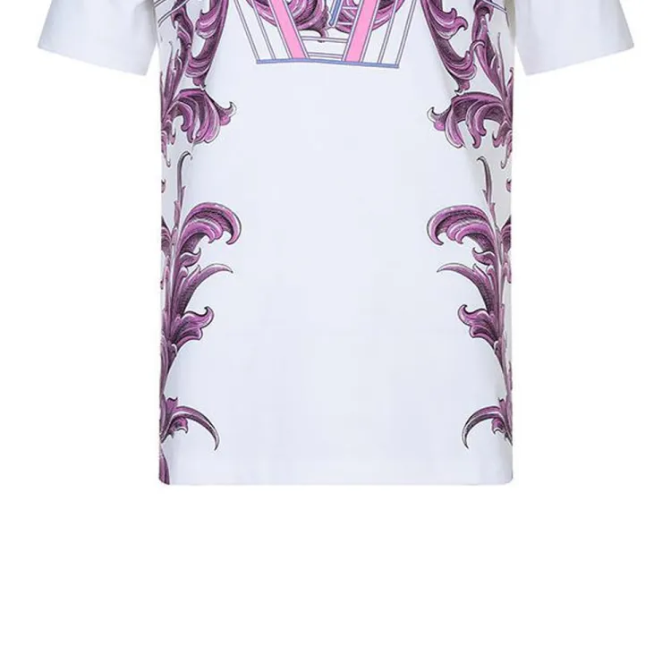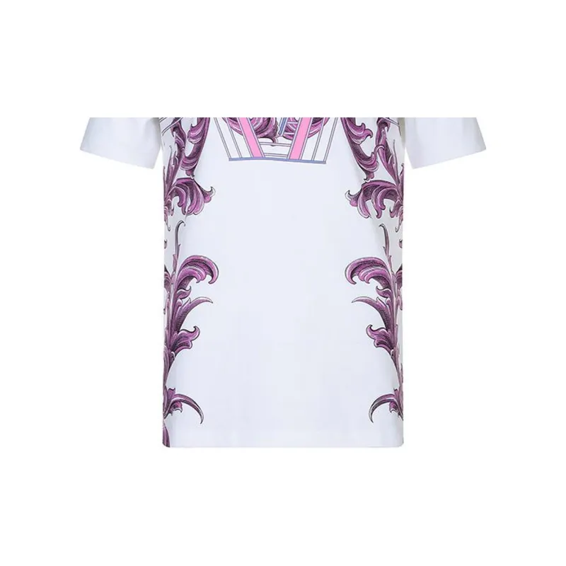 VERSACE Растение Узор Принт Круглый вырез Пуловер Короткий рукав Т-Рубашка Мужская Белая