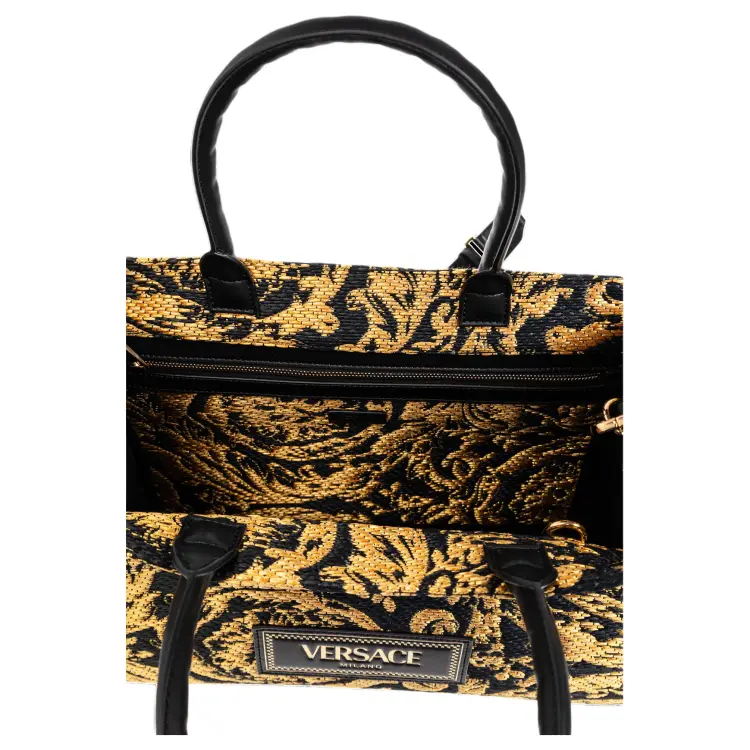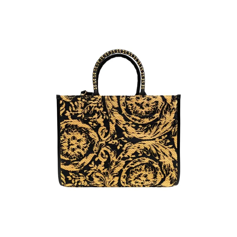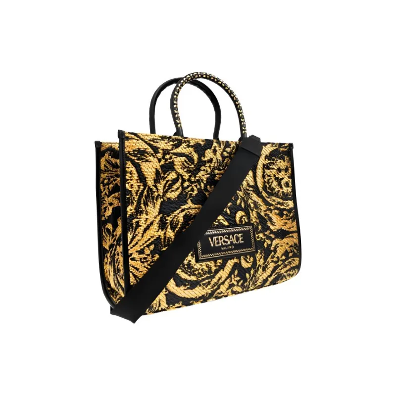 VERSACE Рафия Сумка-тоут Средняя Женская Черная и Желтая