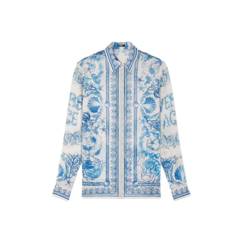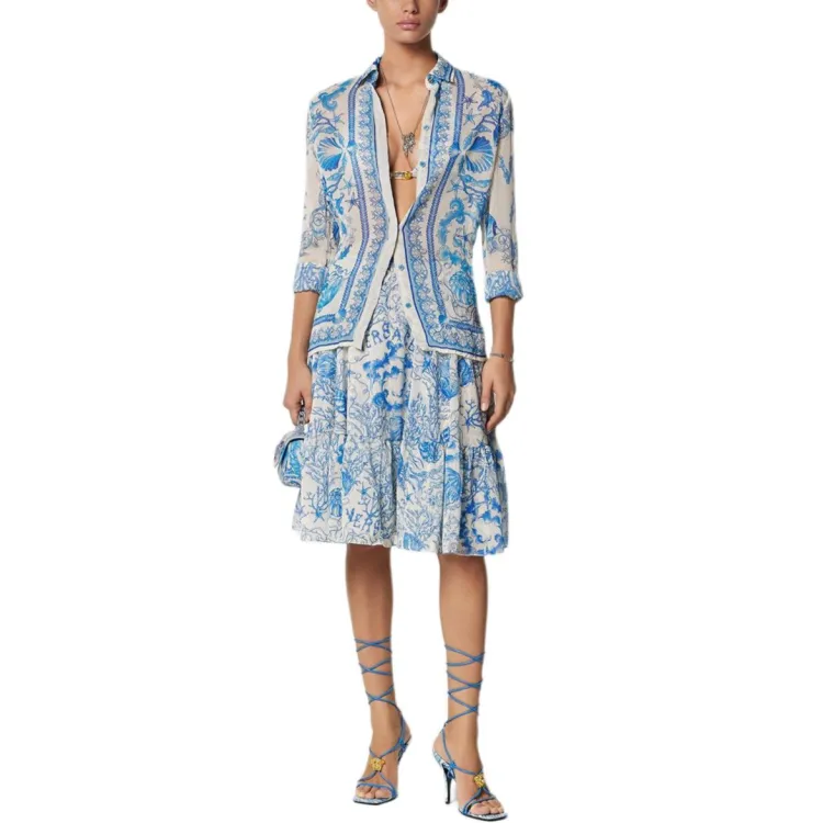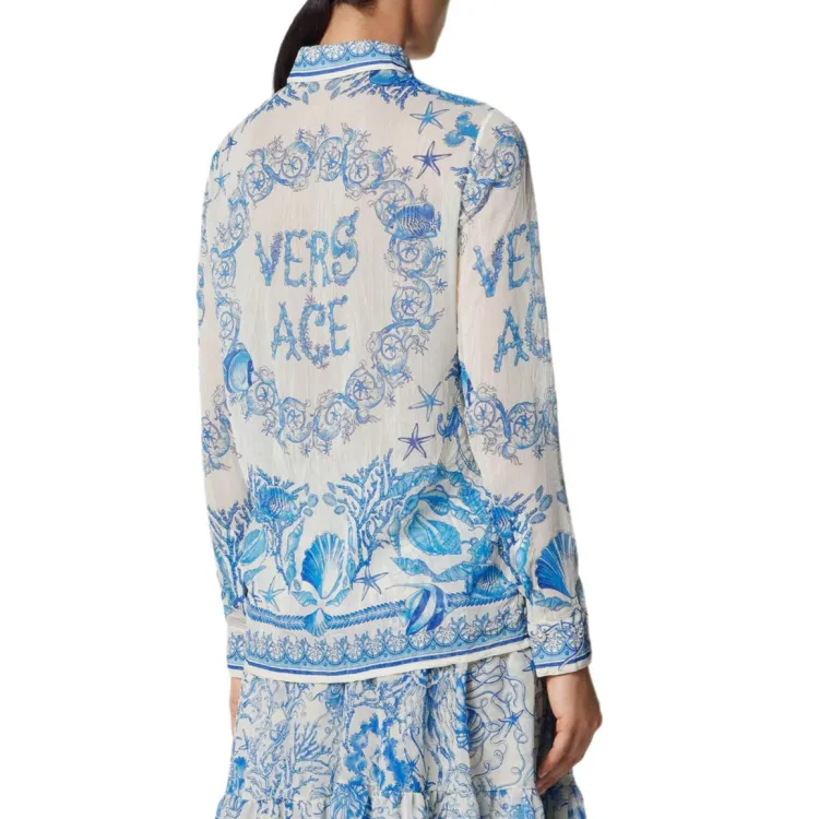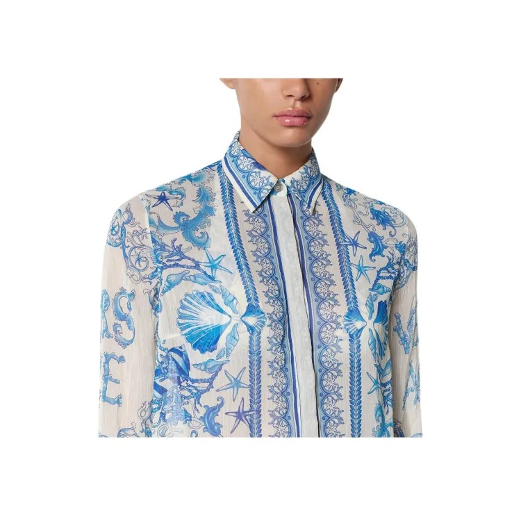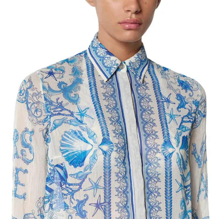 VERSACE Barocco UNDERWATER Рубашка Женская Синяя Белая
