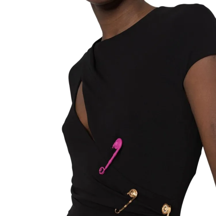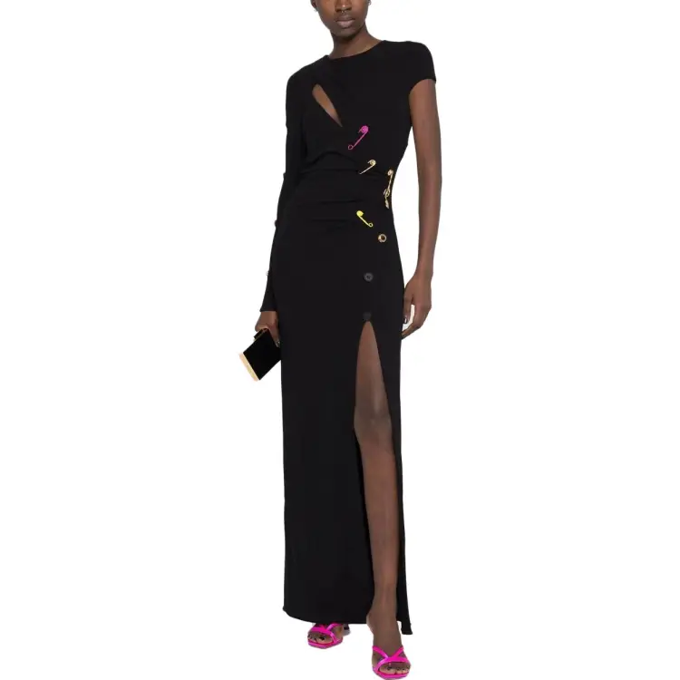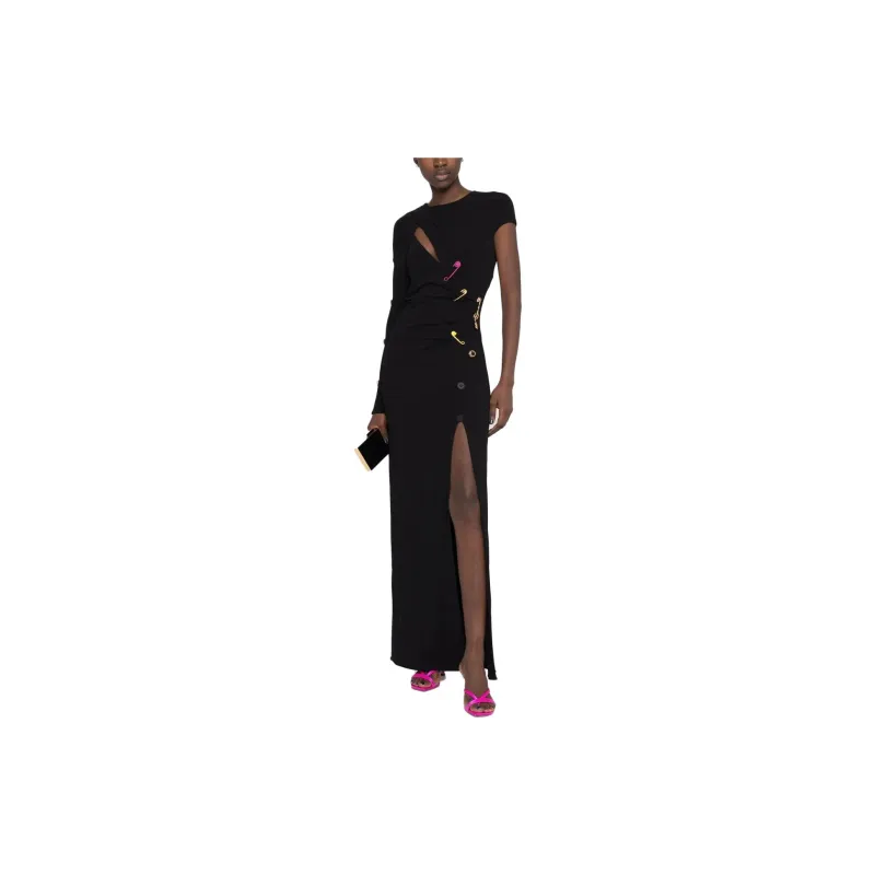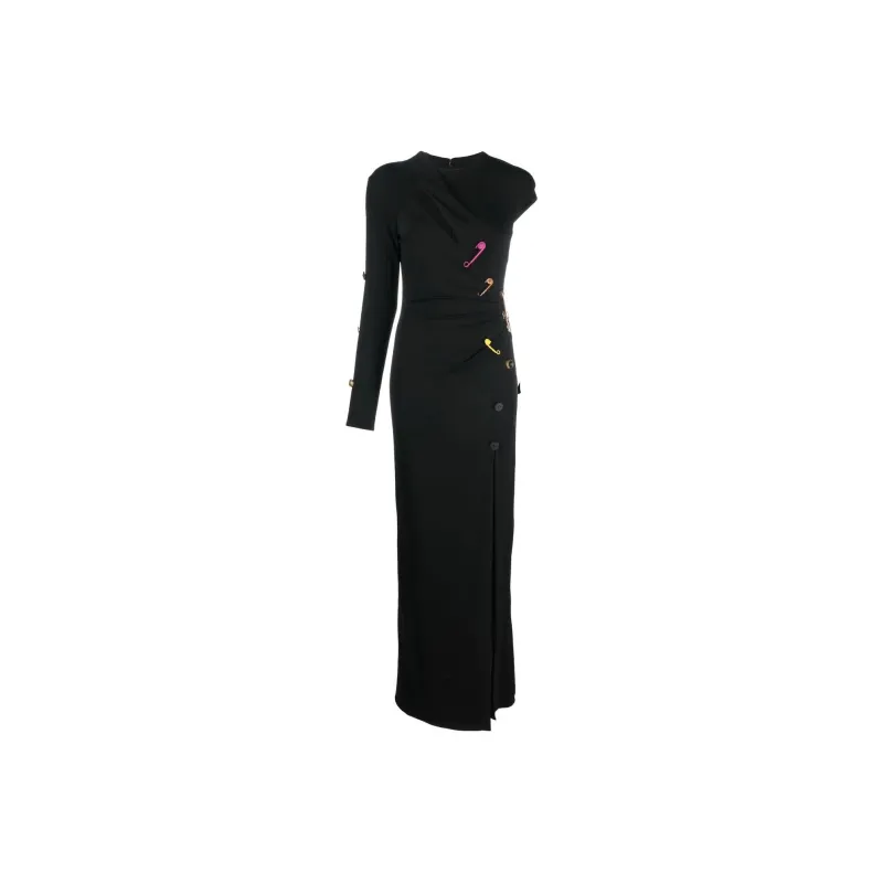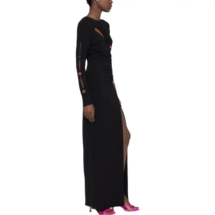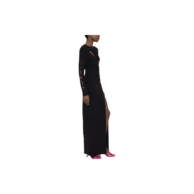 VERSACE SS23 Длинное платье с длинными рукавами женское черное