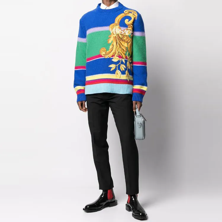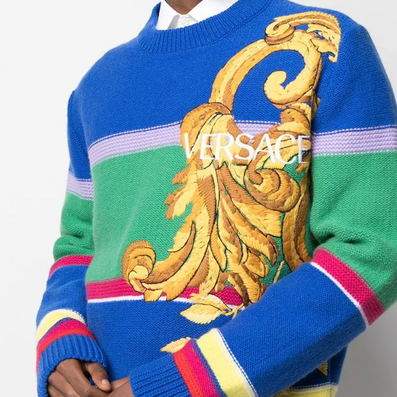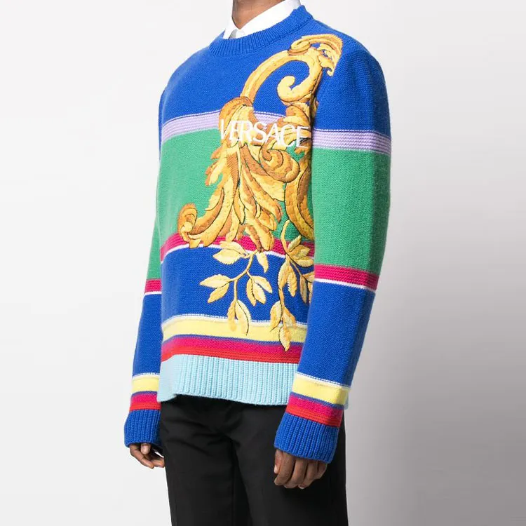 VERSACE Синий Мужской Кашемировый Свитер