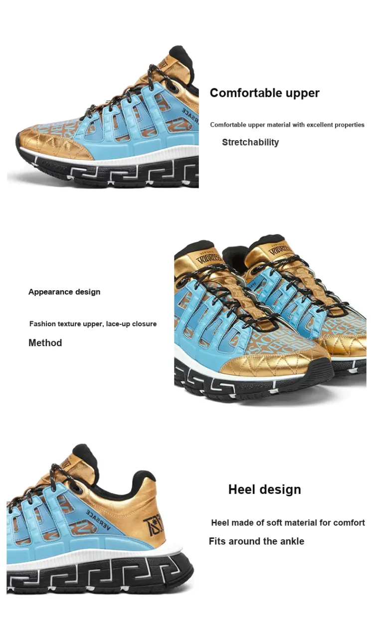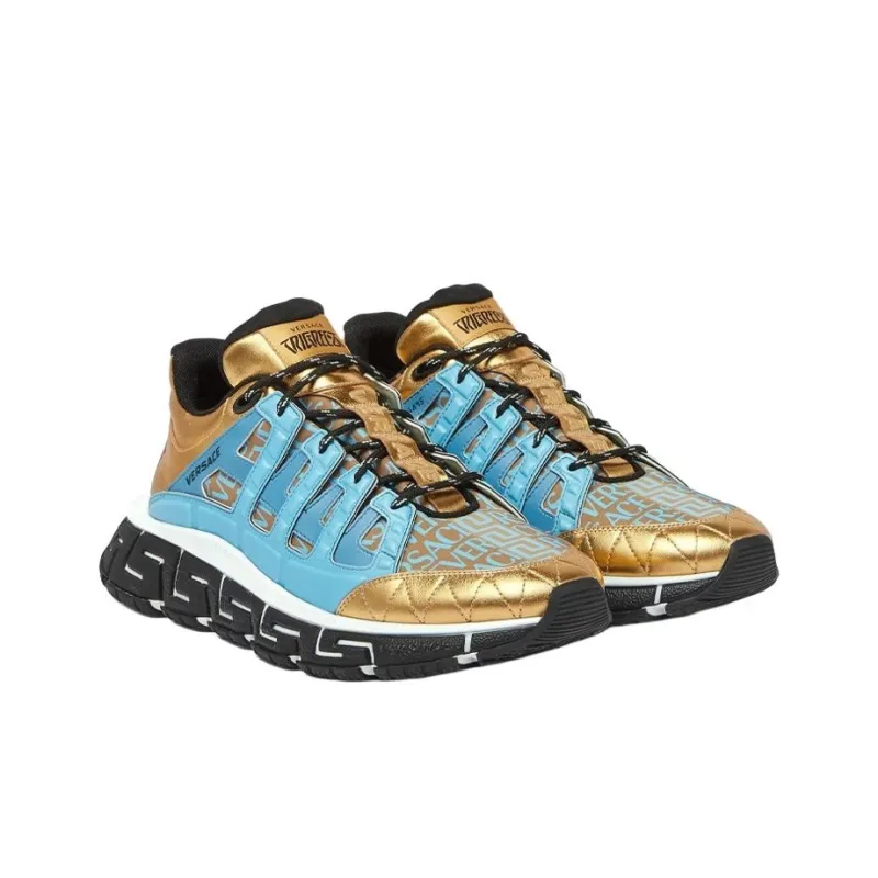 VERSACE Trigreca Низкий Топ Повседневная Обувь Мужская Синий Золото Цвет