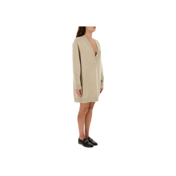 VERSACE Длинное платье с длинными рукавами женское бежевый