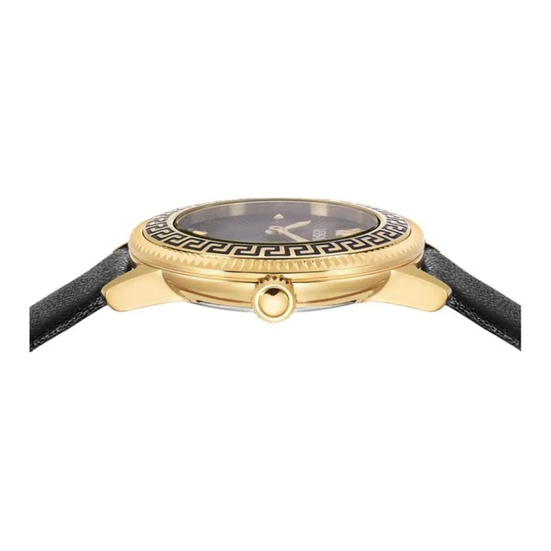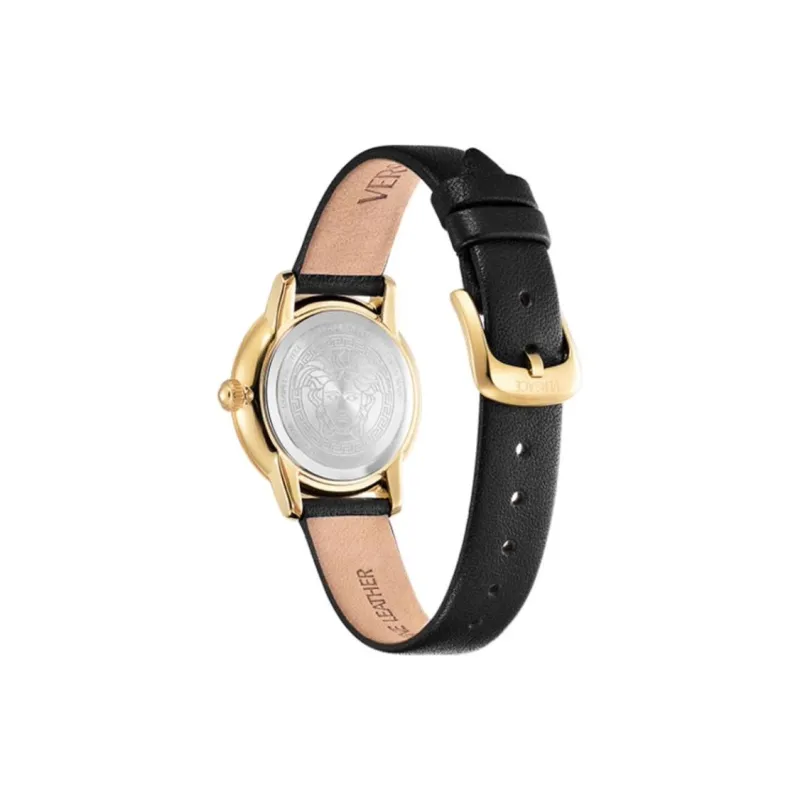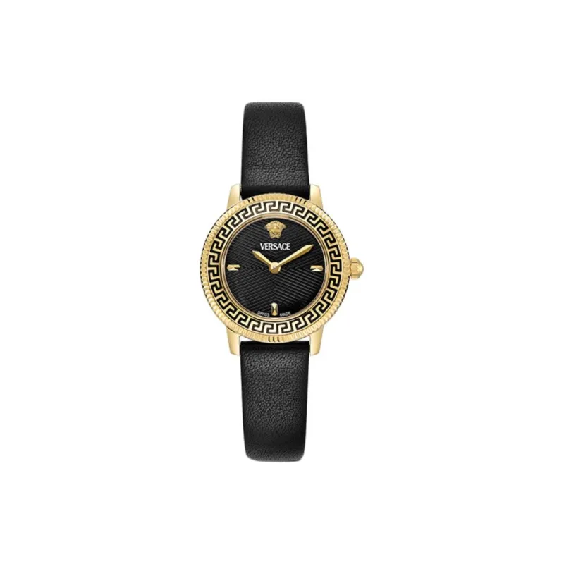 VERSACE V Icon Lady Collection Наручные часы Кварцевый механизм Коровья кожа Ремень 30MM Черный циферблат Женские часы