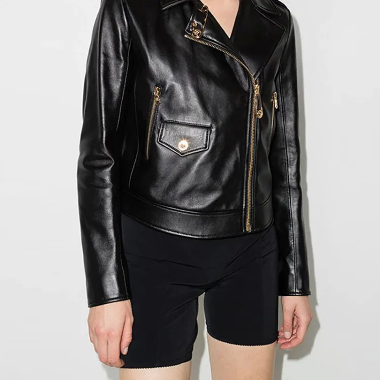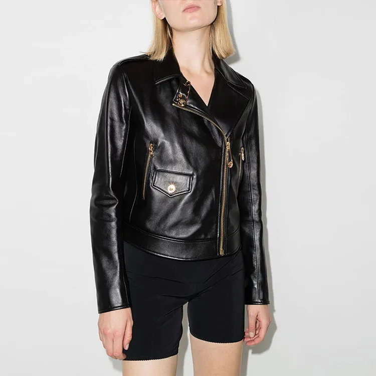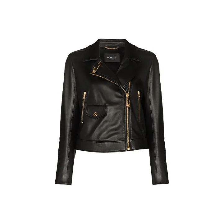 VERSACE Кожа Куртка Женская Черная