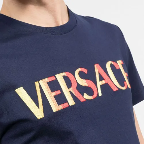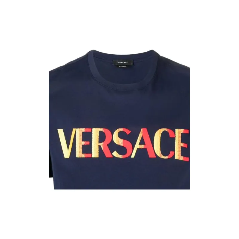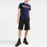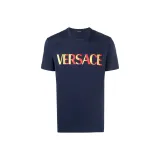 VERSACE Логотип Вышивка Круглый вырез Пуловер Короткий рукав Т-Рубашка Мужская Синяя