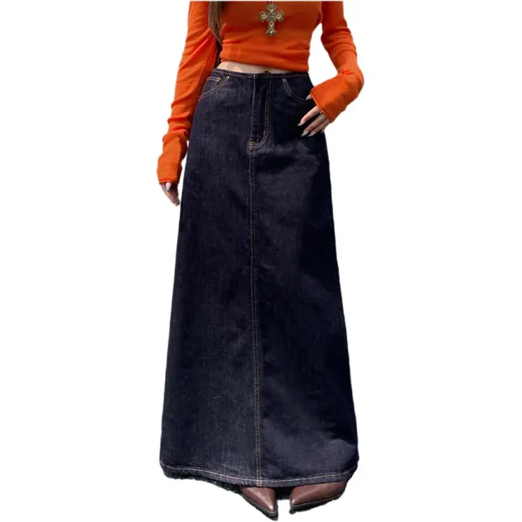 VFVK Синий Женские Джинсовые Длинные Юбки