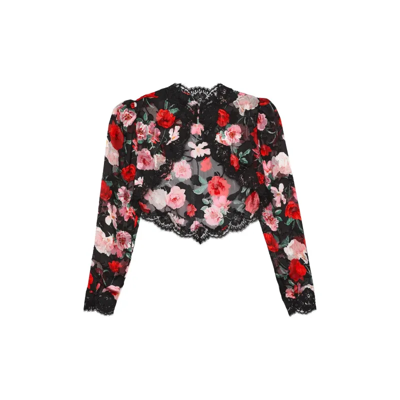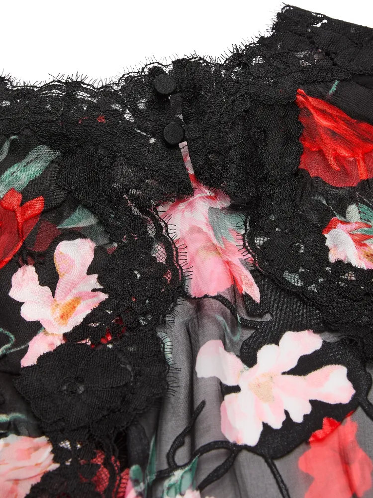 Victoria's Secret Atelier Victoria's Secret Noir Выгорающая печать Сатин Кружевная отделка BF Пижамный топ Женские Черный цветок