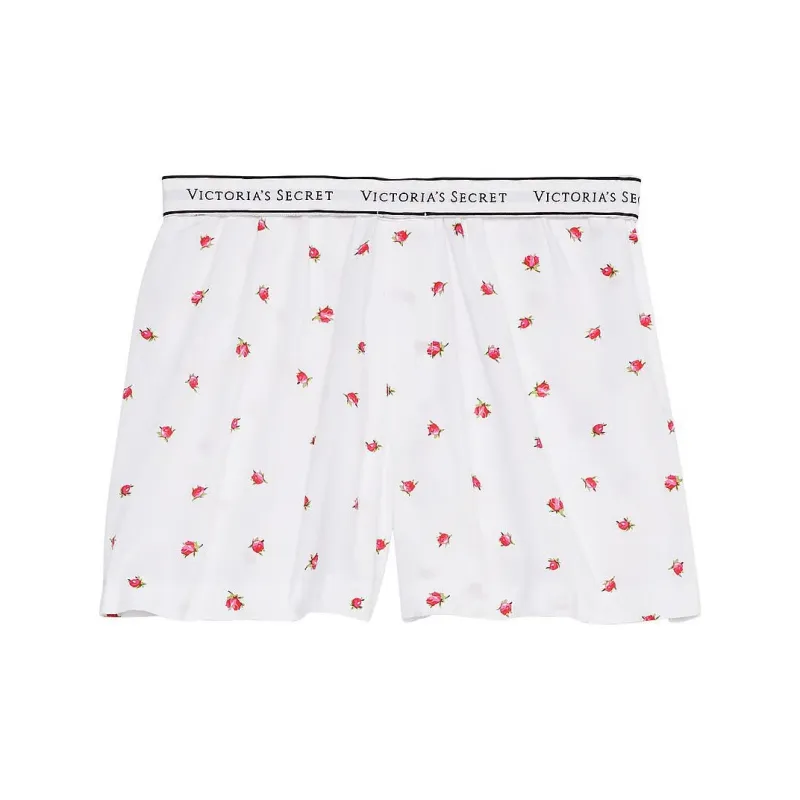 Victoria's Secret Heritage Хлопок Боксеры Белые Rosebuds Пижамные Штаны Женские Белые Розовые