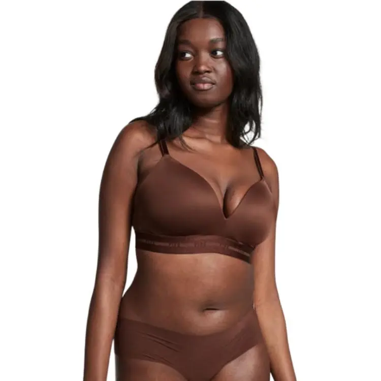 Victoria's Secret Розовый 9406 Сборка Украшение сборкой Стиль WEAR EVERYWHERE PUSH UP Беспроводной Бюстгальтер Коллекция Бюстгальтер Женские Темно-кофейный