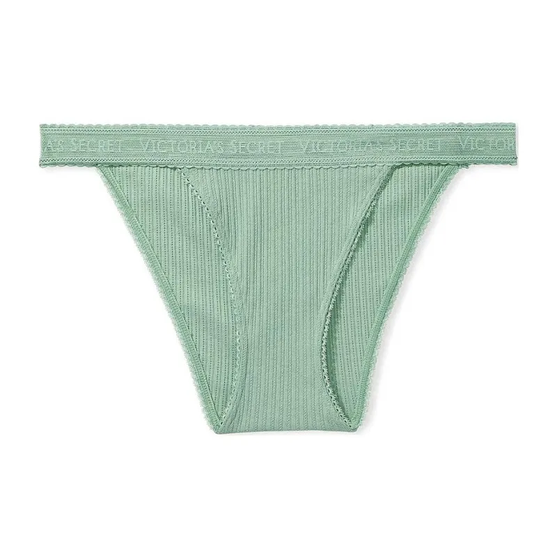 Victoria's Secret Розовый Хлопок Логотип Хлопок Кружево Обхват талии Танга Панталоны Зеленый Трусы Женские 1 Пачка Зеленый
