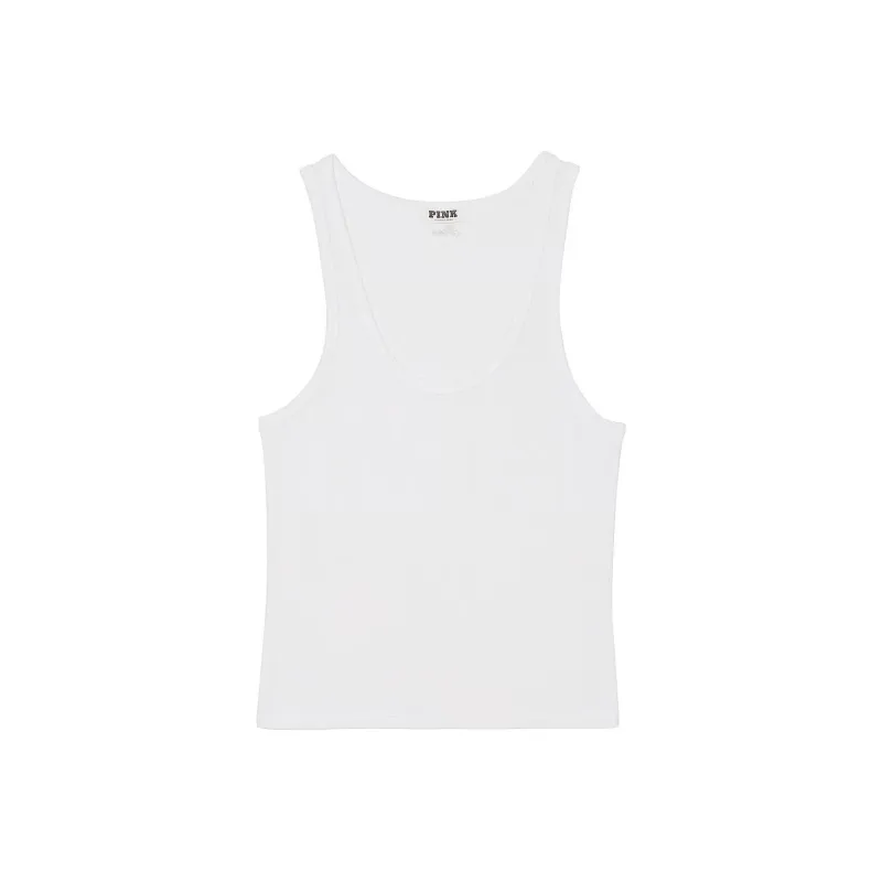 Victoria's Secret Розовый Ткань в рубчик Модал Scoop Топ Белый Майка Женская Белая