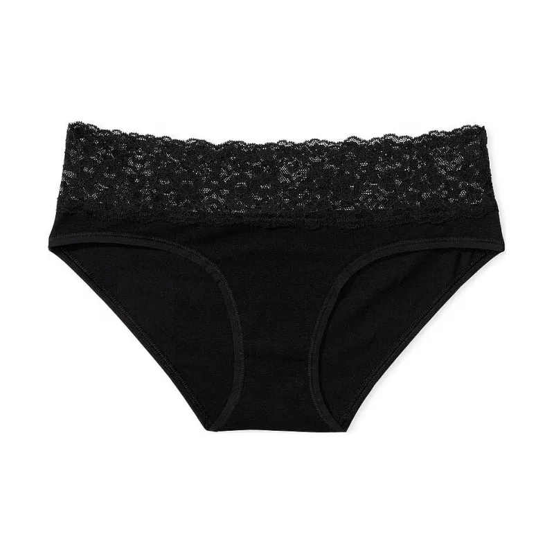 Victoria's Secret Розовый The LACIE Кружево Обхват талии Хлопок Hiphugger Panty Черное Нижнее белье Женское 1 упаковка