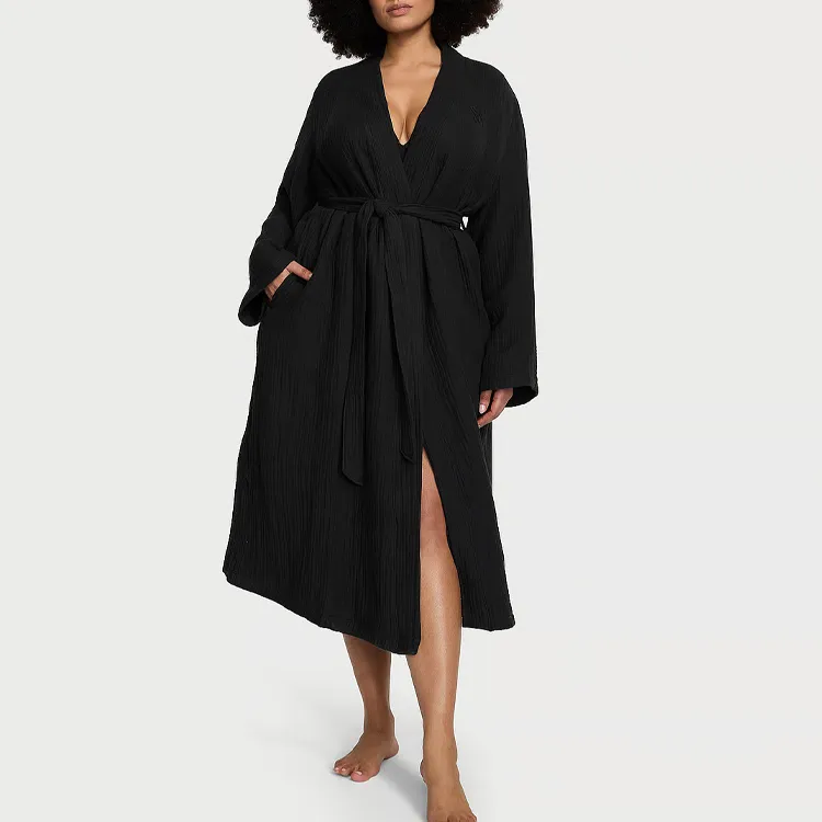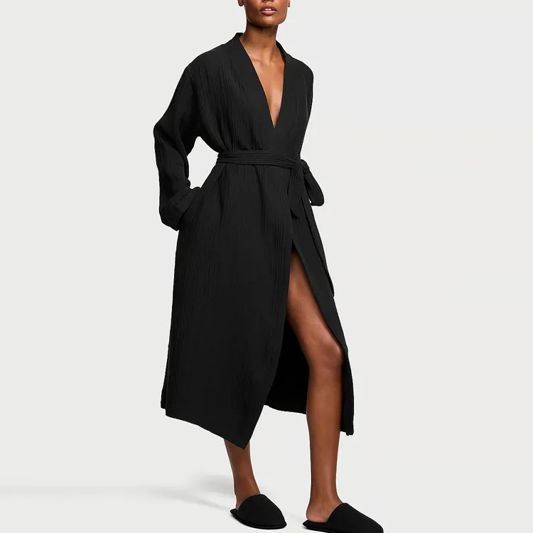 Victoria's Secret Розовый Victoria's Secret Хлопок Марля Spa Robe Черный Sleep Robe Женские Черный