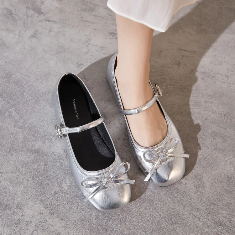 VICTORIA VERA Балет Балетки Туфли Мэри Джейн Женские Серебряные