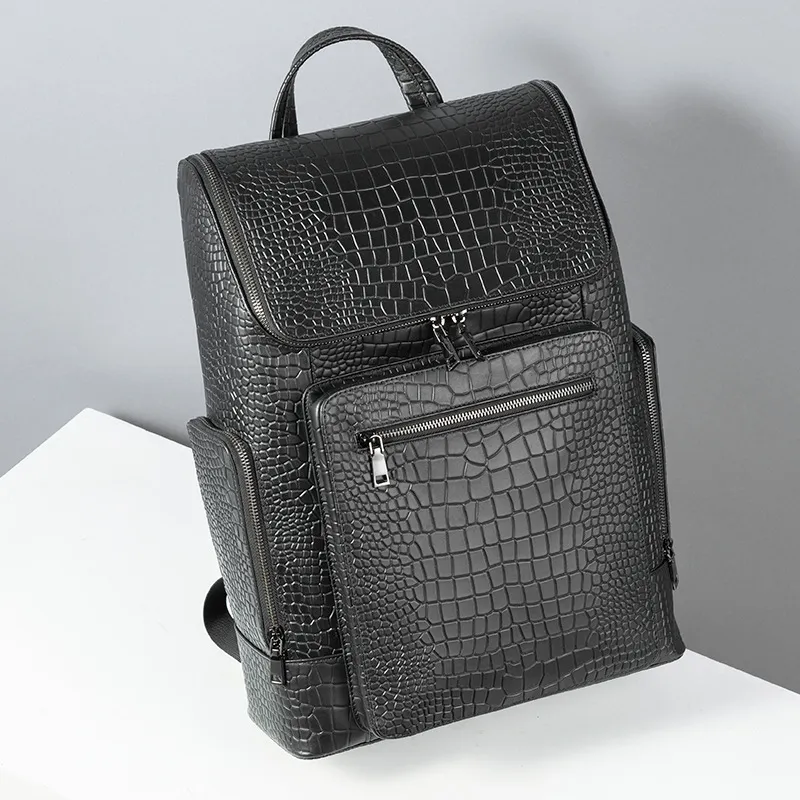 VIHUS Рюкзак из крупнозернистой текстуры коровьей кожи стандартный мужской черный