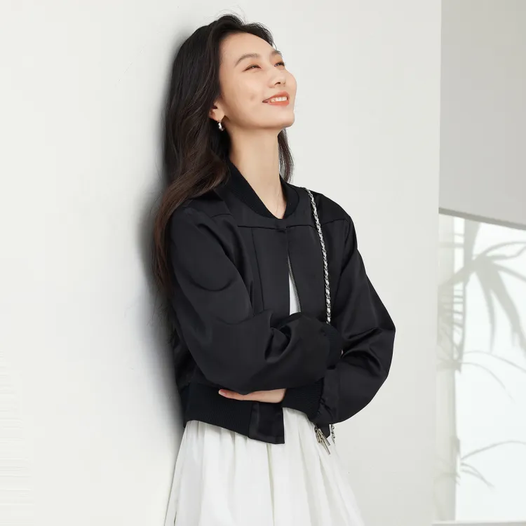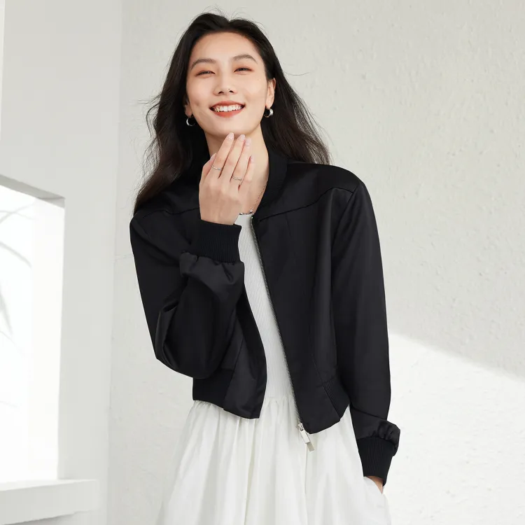VIMLY Бейсбольная куртка Женская Спокойный Черный