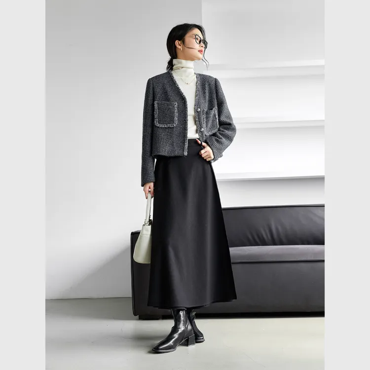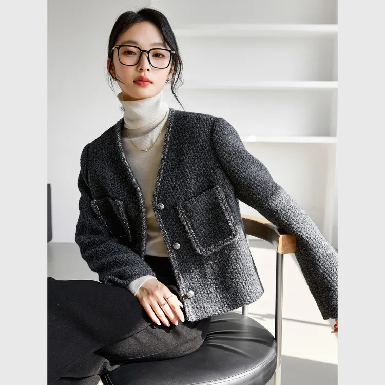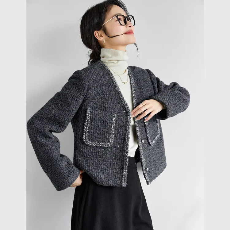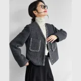VIMLY Cropped Coat Women's Charcoal Gray VIMLY Укороченное пальто женское угольно-серый