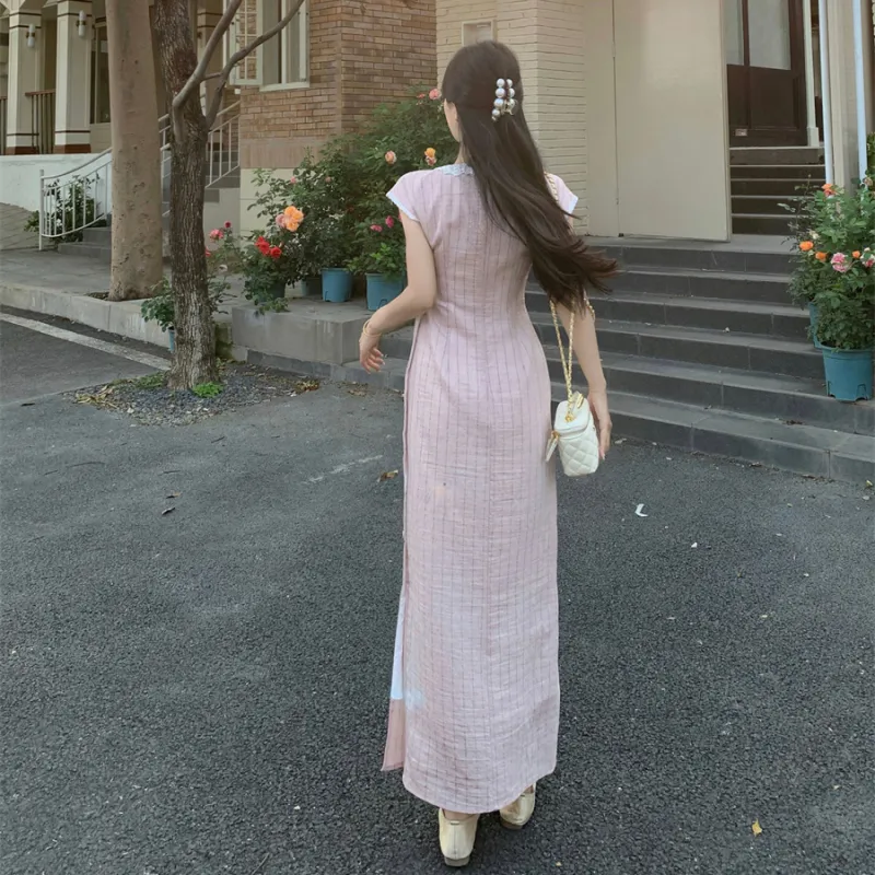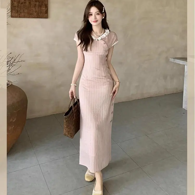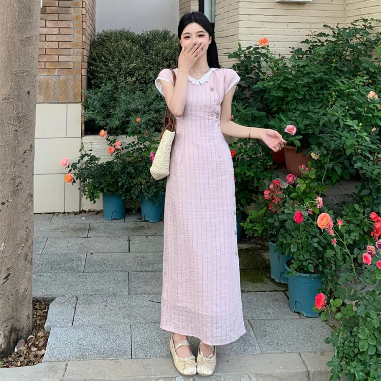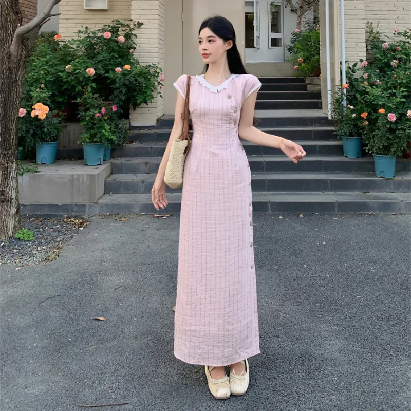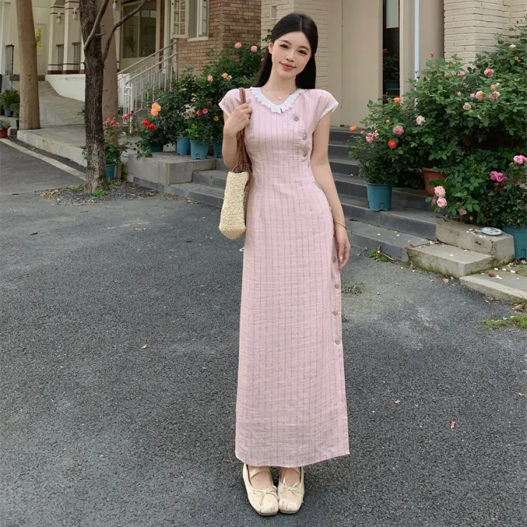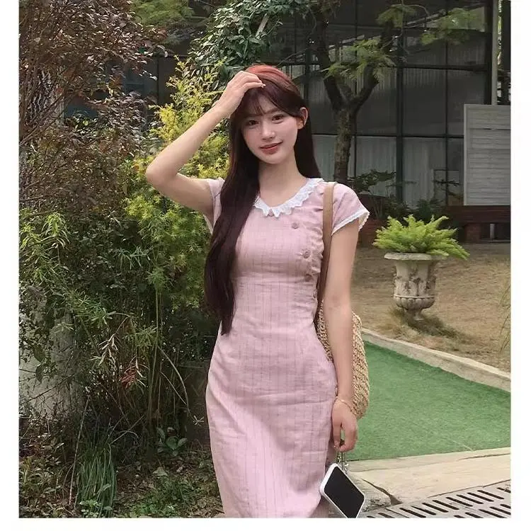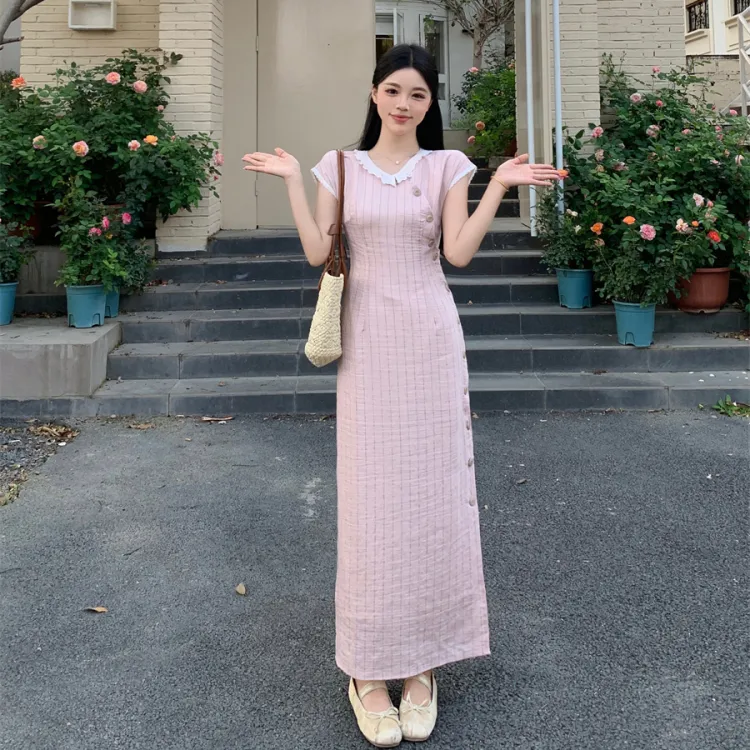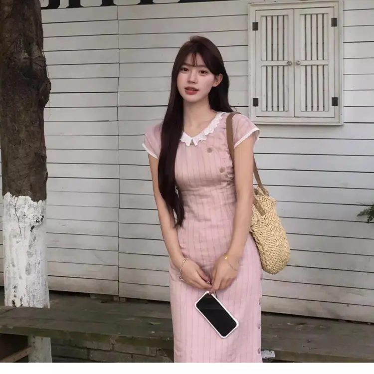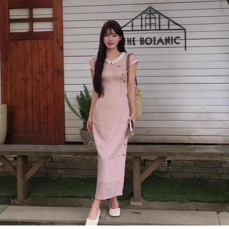 Vine Color Короткий рукав Платье Женское Розовые оттенки Одежда