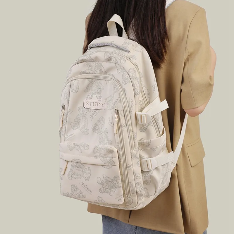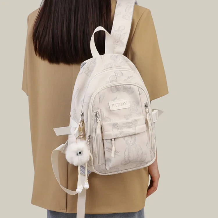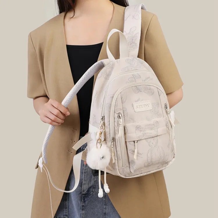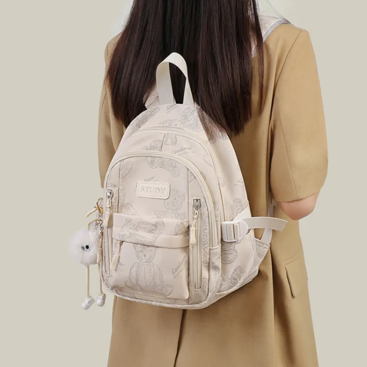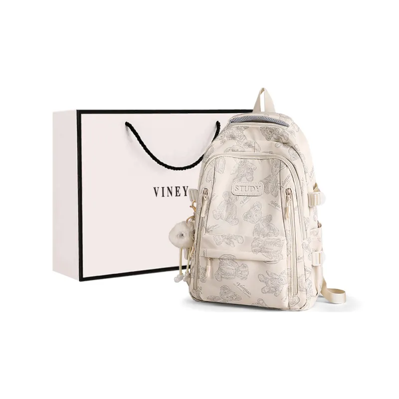 VINEY Ткань Рюкзак Большой Женский Экрю Бежевый Маленький