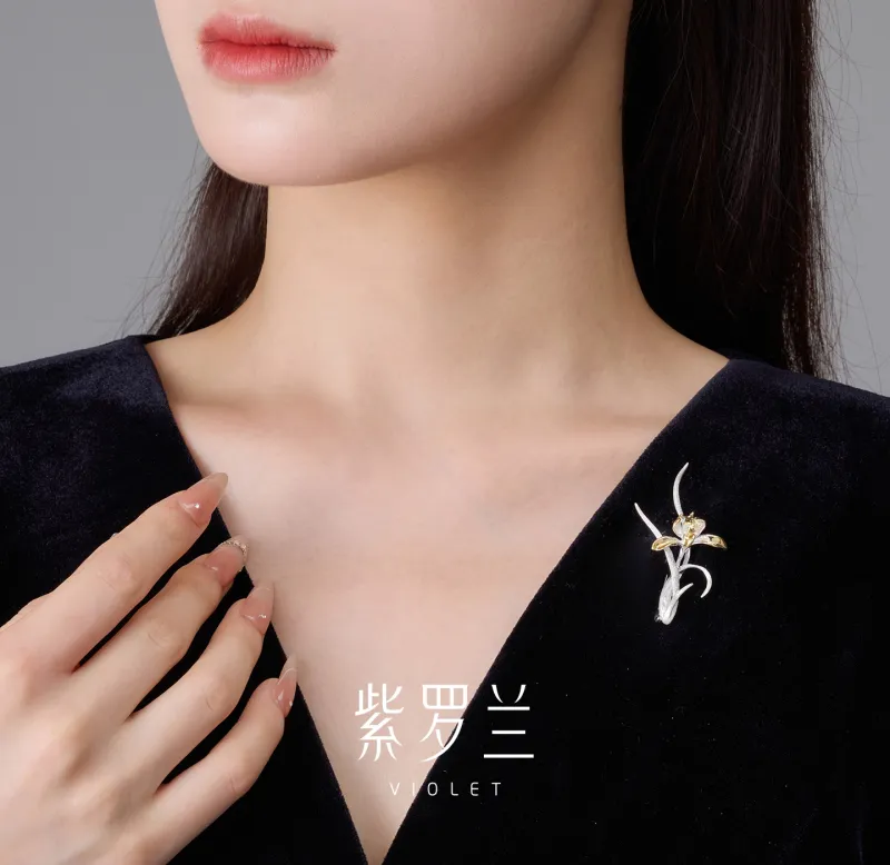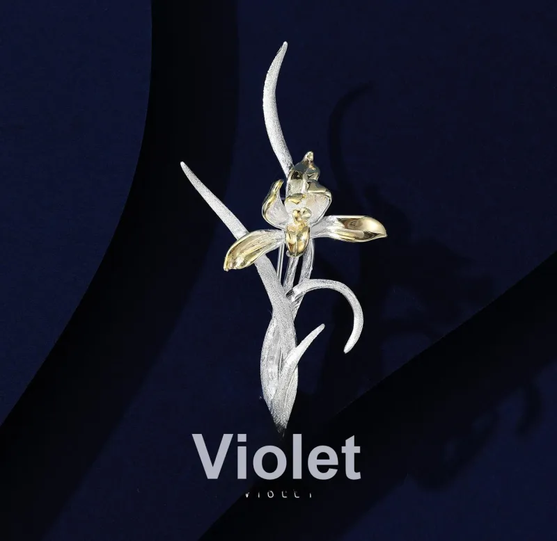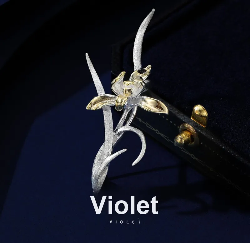 Фиолетовые броши из серебра 925 пробы женские