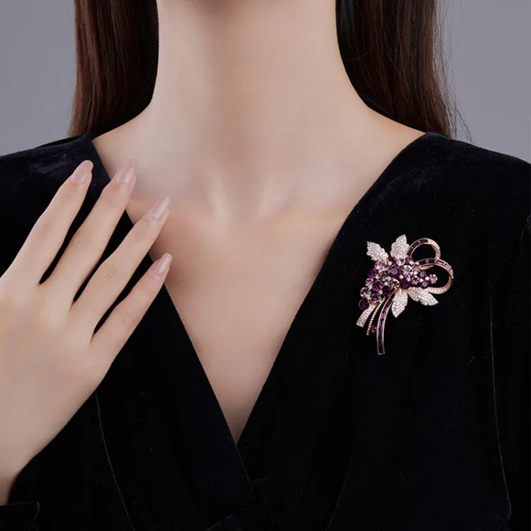 Фиолетовый синтетический кубический цирконий броши унисекс