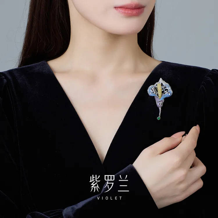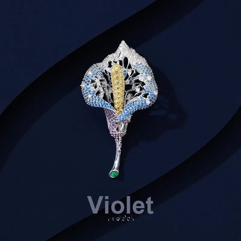 Фиолетовые синтетические кубические циркониевые брошки женские