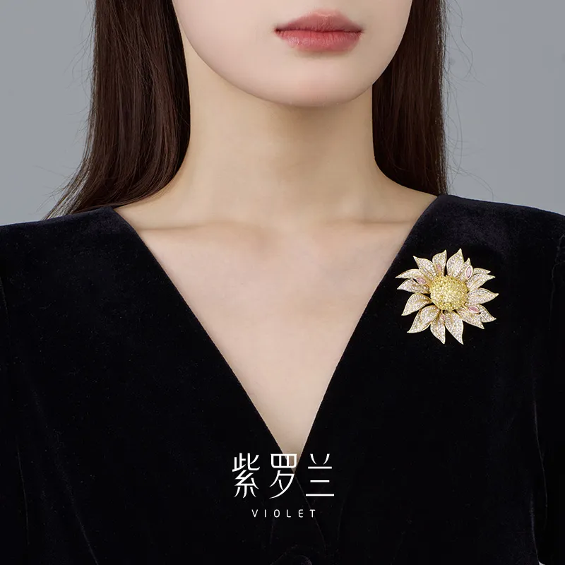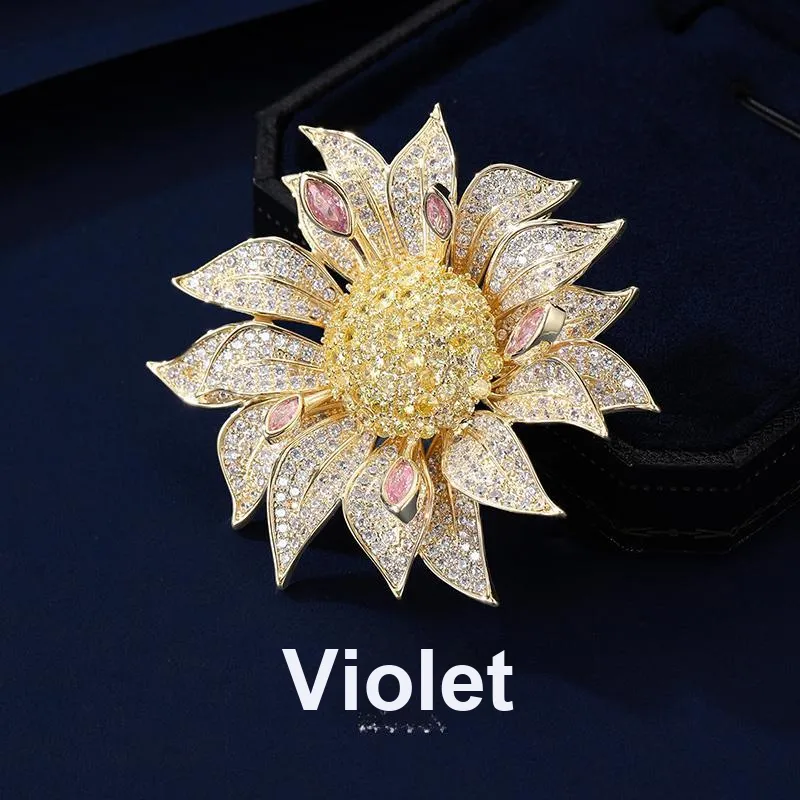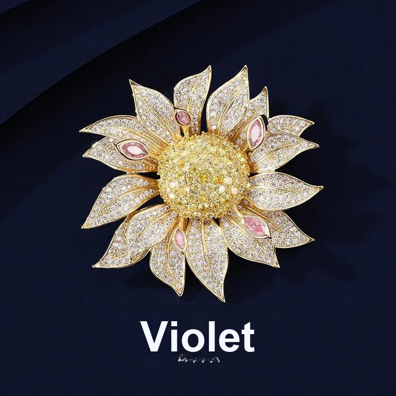 Фиолетовые синтетические кубические циркониевые брошки женские