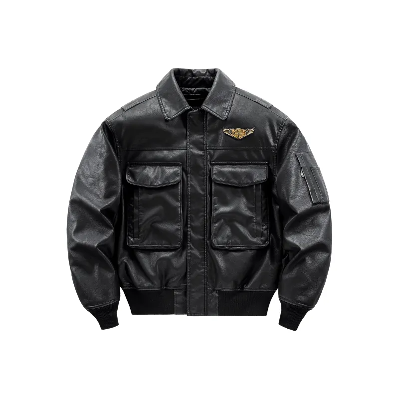 VIP Однотонный Значок Вышивка Утепленный Свободный крой Спущенное плечо Отложной воротник Пилот Термический Пух Унисекс