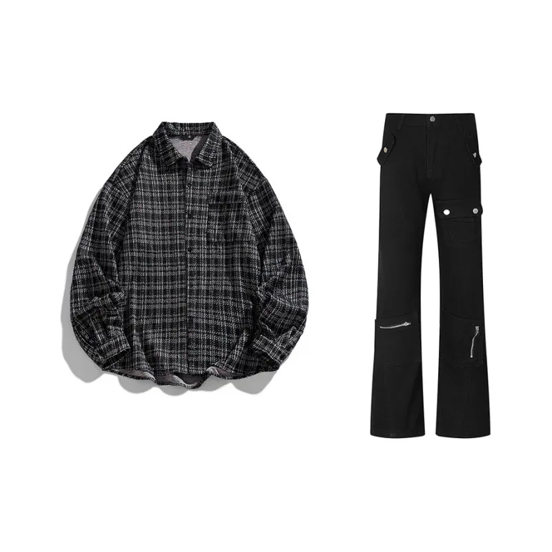 Комплект:Черная рубашка с длинным рукавом + черные штаны