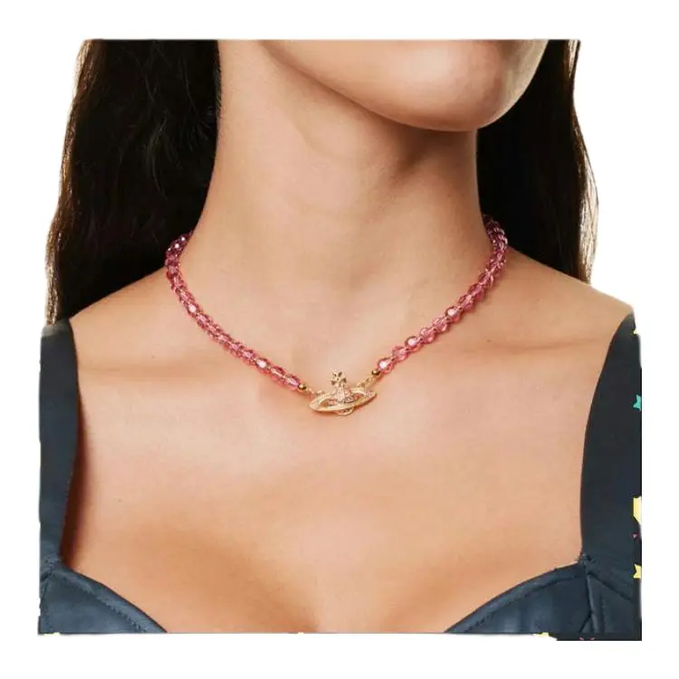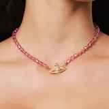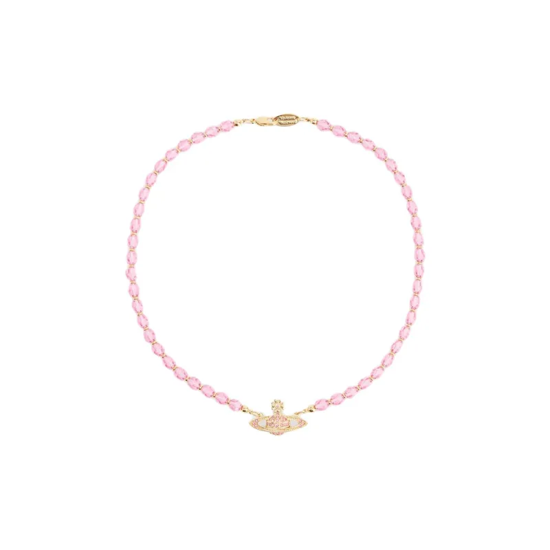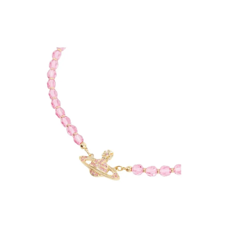 Vivienne Westwood Ожерелье из бусин "Сатурн" из латуни кристалл женский персиково-розовый ромб золото