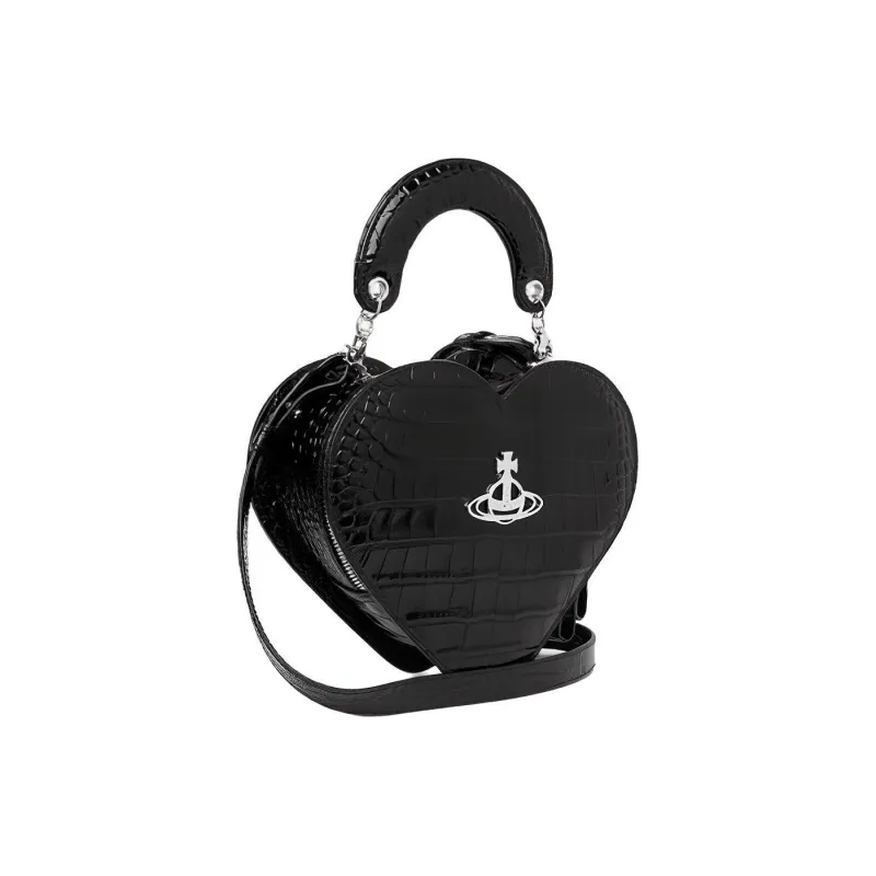 Vivienne Westwood Тисненая кожа Сердце-образная Сумка Сумка Сумка через плечо Сумка через плечо Женская Черная