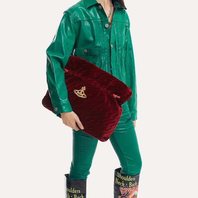 Vivienne Westwood Eva Series Cotton Fur Clutch Large Women's Burgundy