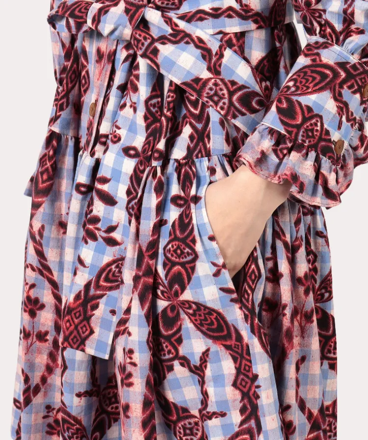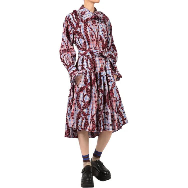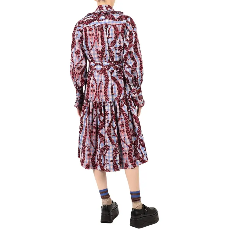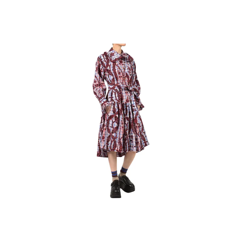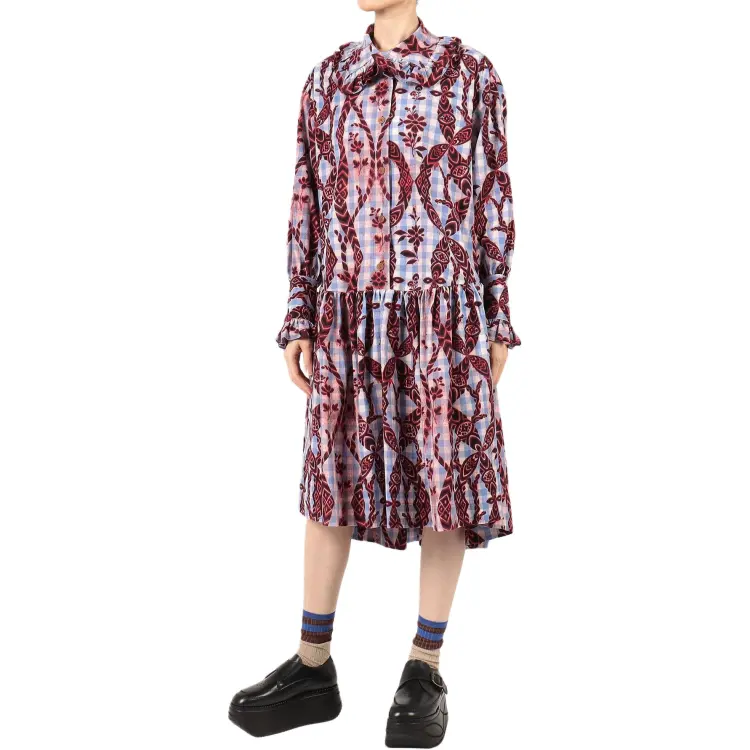 Вивьен Вествуд Gather Frill Рубашка One Piece Длинный рукав Платье Женское Синий