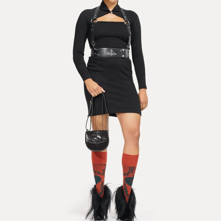 Vivienne Westwood Кожа Saddle Сумка Портативная Сумка через плечо Сумка через плечо Женская Черная