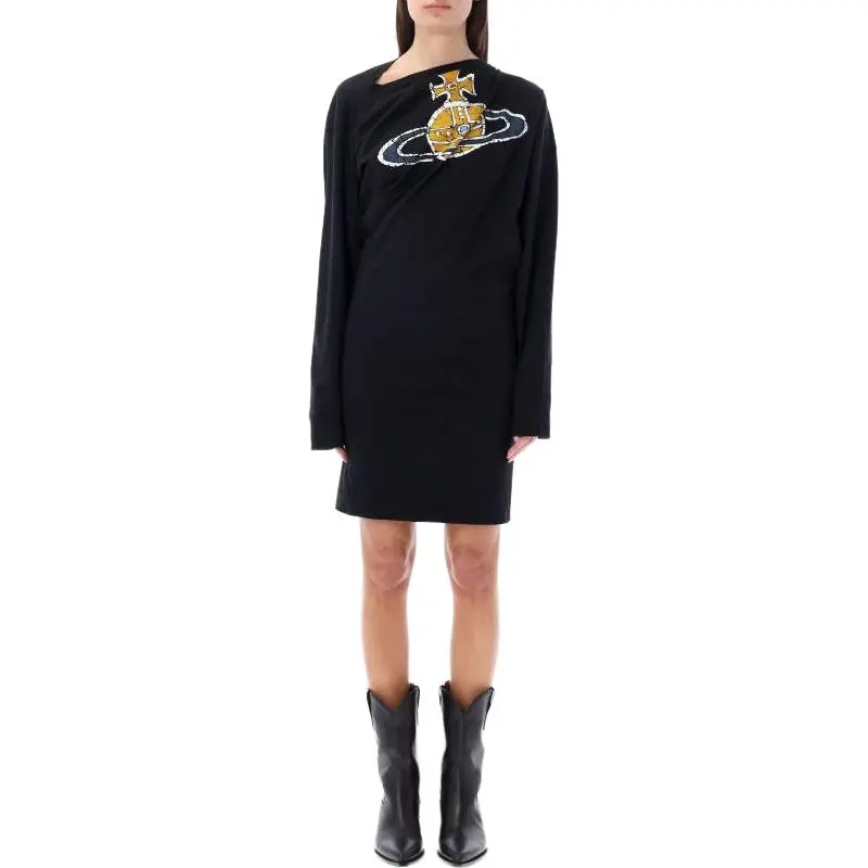 Vivienne Westwood Длинное платье с длинными рукавами женское черное