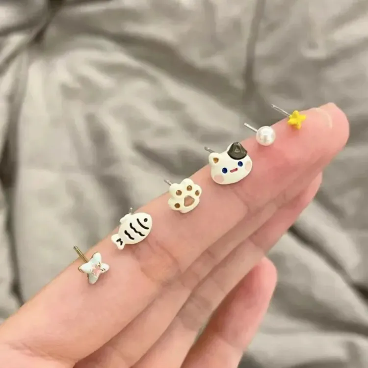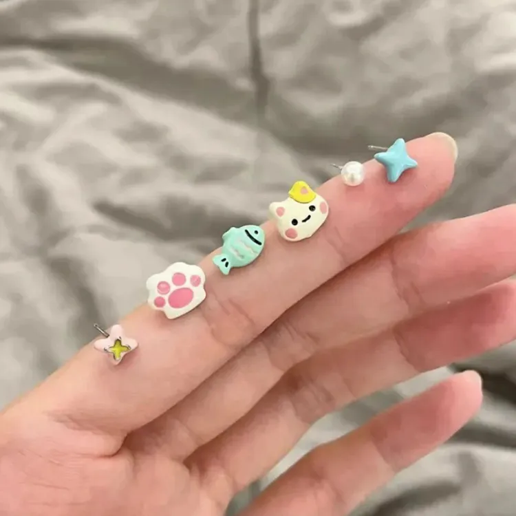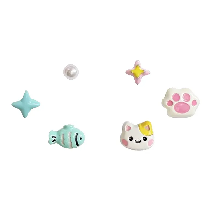 Стиль:Розовый котенок, серьги-гвоздики [6 пар]
