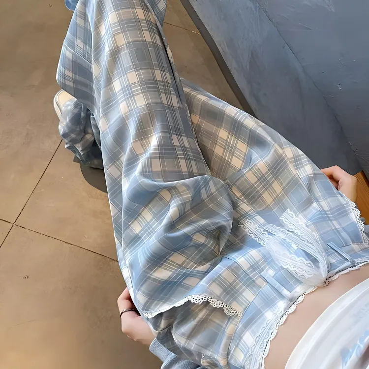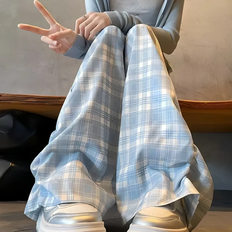 VKXOW Повседневные брюки женские клетка синий