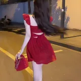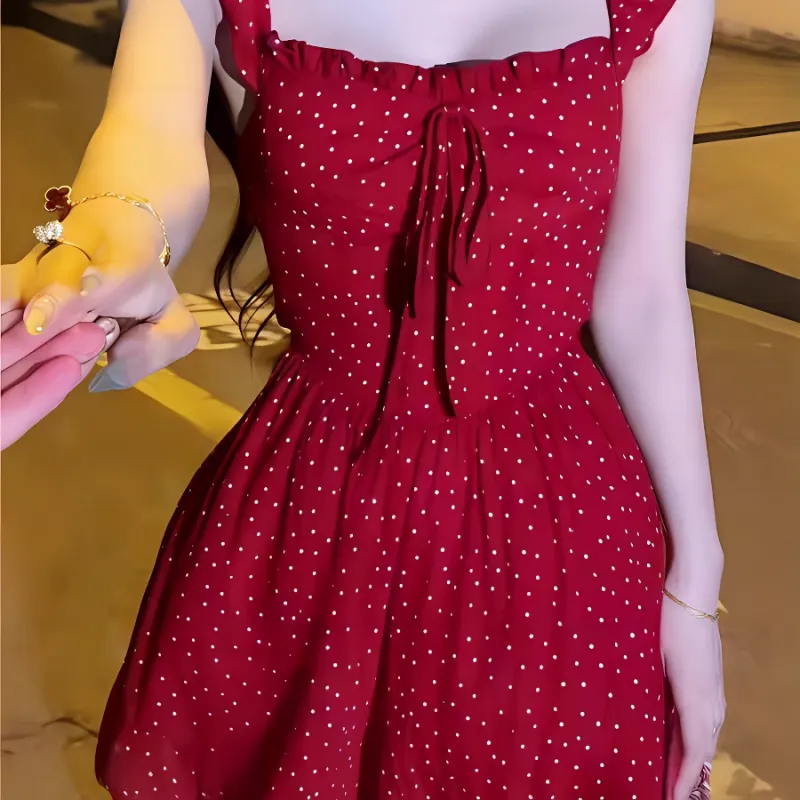 Цвет:Красное платье с короткими рукавами