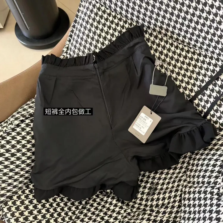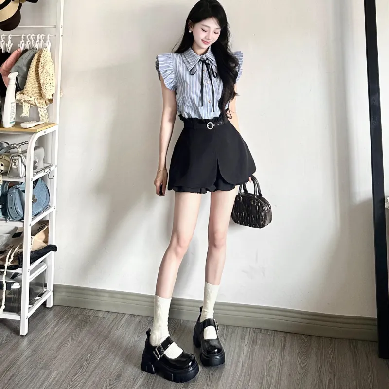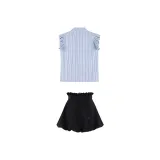 VKXOW Комплект с юбкой Женские Синий Белый Топ Черная Юбка