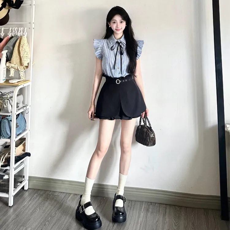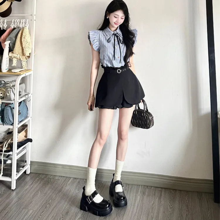 Цвет:Синий Белый Топ/Черная Юбка