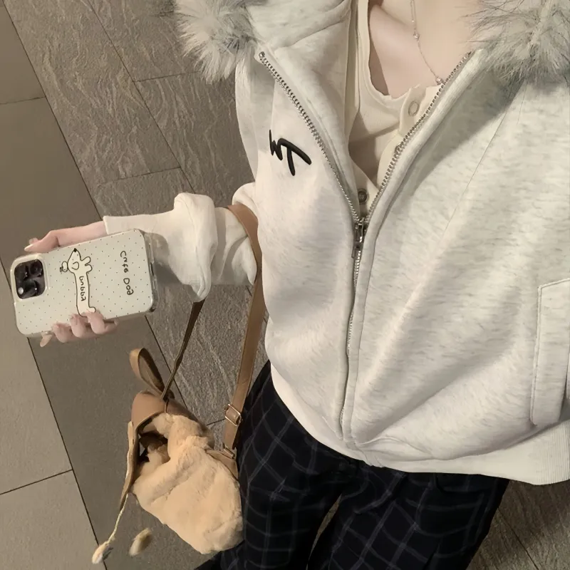 VKXOW Серый с флисовой подкладкой женские свитшоты