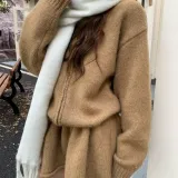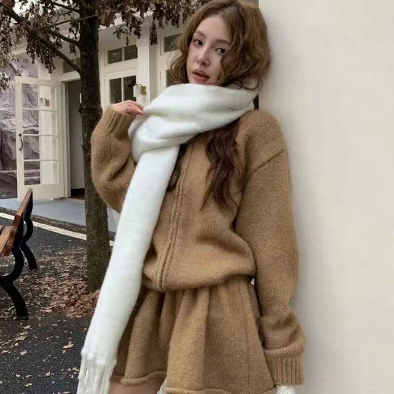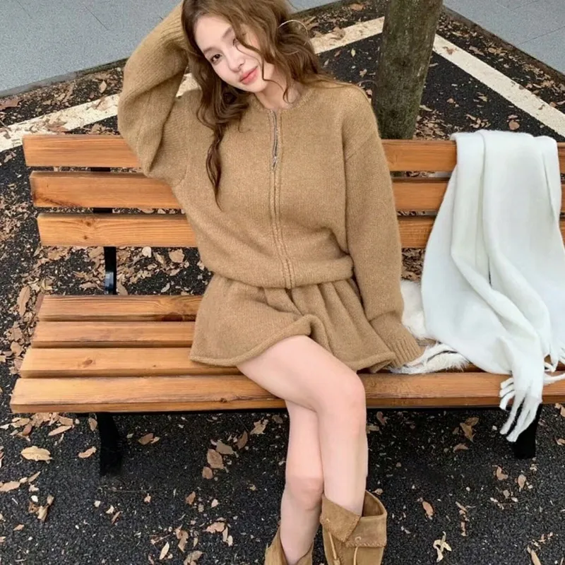 Трикотажная ткань, кардиган, короткая юбка, двухкомпонентный комплект